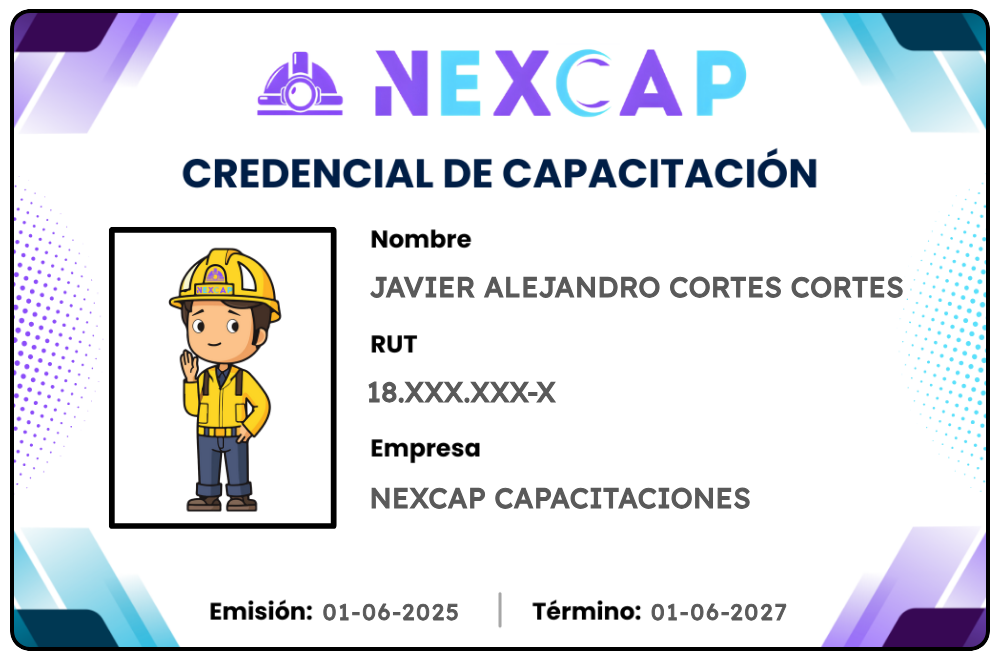 Cada trabajador capacitado en Nexcap recibe una credencial digital personalizada, que se actualiza automáticamente con los cursos que realiza. Esta credencial no solo valida su trayectoria formativa, sino que también se convierte en un distintivo de calidad y compromiso profesional.